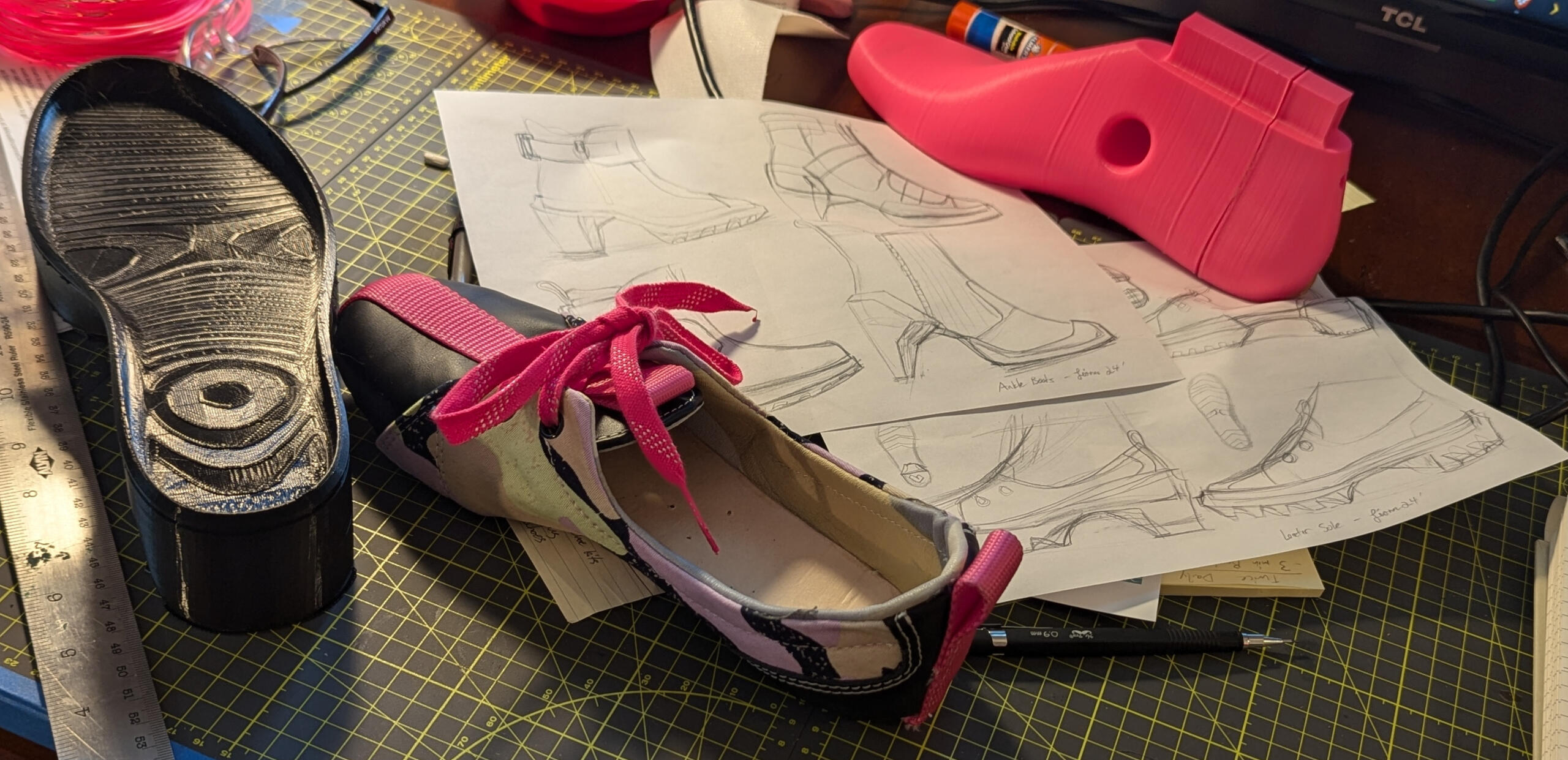 I love the challenge. I have so much to learn, but I find ways to compensate with my education in CAD, 3D-printing, and pattern drafting. I find myself most excited about customization, and the intersections of size and gender inclusivity in footwear. I believe that as an independent maker without the constraints of minimum order quantities and by creating the products myself, I can one day make footwear for underserved folks, and perhaps inspire other hobbyists.